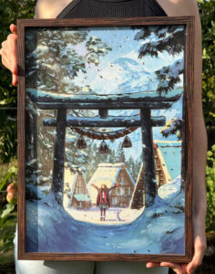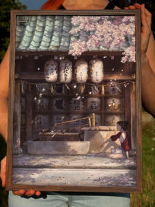 Vente de prints de mes créations originales représentant des paysages du Japon, et des illustrations plus fantasy. Certains formats sont des prints avec dorures pour une finition luxueuse. Création faites main, sans utilisation d’IA.