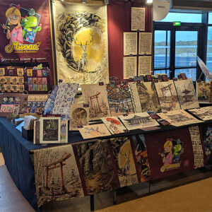 Mes illustrations sont inspirées de mes photo prises lors de mes voyages au Japon, travaillées à l’encre de chine, à l’aquarelle et aux crayons de couleur puis imprimées sur panneaux rigides. Ma mascotte M. Pigeon, décliné en pin’s, magnet de stickers, m’accompagne également partout !