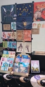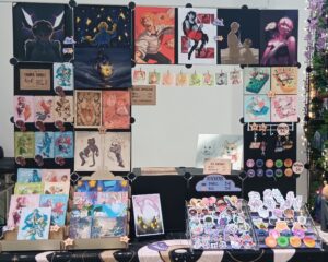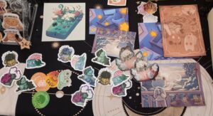 Mignon, fantastique et un peu edgy, Shindazzled propose des illustrations et nombreux stickers à l’effigie de ses personnages ainsi que de ses média préférés. Sur ce stand, les conversations sont les bienvenues ou pourquoi pas une commande aquarelle personnalisée ?