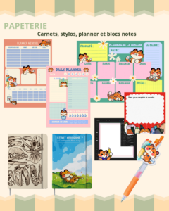 Zigoumi crée carnets, cartes et goodies illustrés pour mettre un peu de bonne humeur sur vos bureaux et dans vos sacs. Chaque pièce est pensée pour faire sourire, ou meme accompagner quand le quotidien devient difficile (clicker, stim toy, cartes de communication etc)