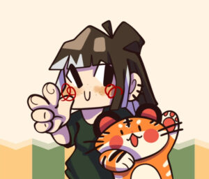 Vous croiserez aussi Zigor, sa mascotte : un petit tigre à qui il manque des rayures (et probablement quelques neurones…)